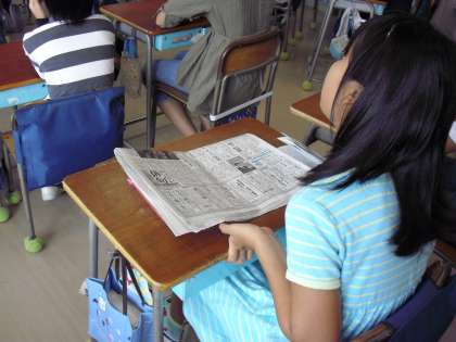 “朝の会”の様子です。5年生になると、新聞を読んで視野を広げている子どももいます。