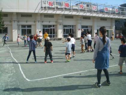 本校の特色の一つである異学年交流のひとつに縦割り遊びがあります。全校児童を10個のグループに分けて、毎月、行われます。今回は5年生が遊びを企画しました。校庭や教室で楽しそうに遊ぶ児童の姿が見られました。