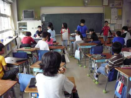 5年生は、朝の会で日直の話・・・提出物の確認・・・