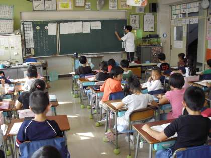 1年生の5時間目は、“国語”カタカナの“ソとン”の違いを確認しながら、授業を進めていました。ノートの字もていねいに書いていました。