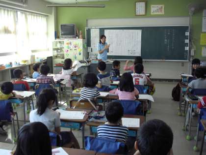 2年生は、“国語の授業”学習してきたことを確認し、子どもの発表が終わり、先生がまとめていました。真剣に聞いている子ども達・・・。
