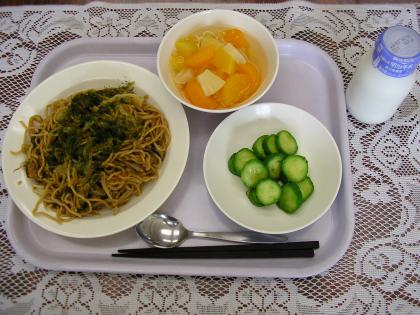 いよいよ2学期が始まりました。今日から給食が始まりました。今日のメニューは、焼きそば、牛乳、きゅうりのひとしお、フルーツポンチです。