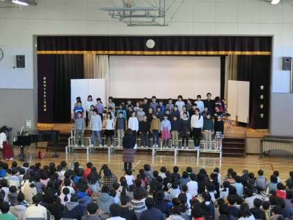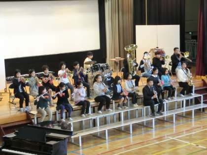 九品仏小学校合唱団と管楽器クラブが発表している様子です。参観していただいた地域の皆様からも好評でした。