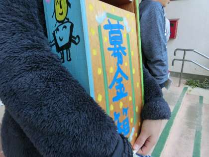 月曜朝会の時間に、代表委員会からユニセフ募金活動についての発表がありました。今年のスローガンは、「みんなの気持ちが集まれば たくさんの命を たすけることができる」です。火曜日から金曜日まで、代表委員が玄関にて募金活動を行います。
