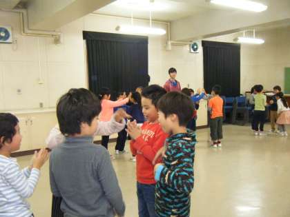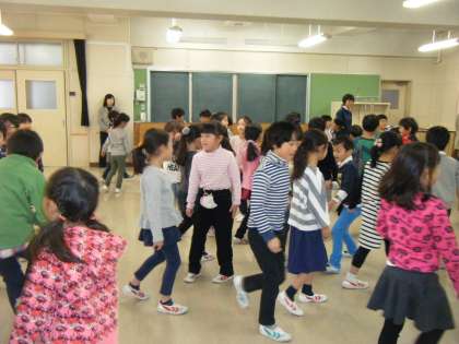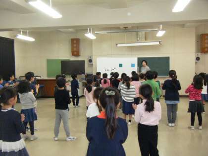 2校時に1年生、3校時に2年生がリトミックを体験しました。リズムに合わせたり拍を感じたりしながら、体を動かしました。
