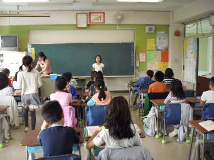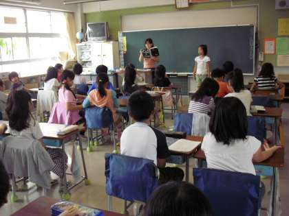 朝の会の先生は、子ども達の健康観察を・・・そのあと、日直のスピーチ・・昨日のBOPで遊んだことを話していました。その話の質問もいくつかありました。