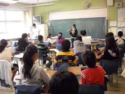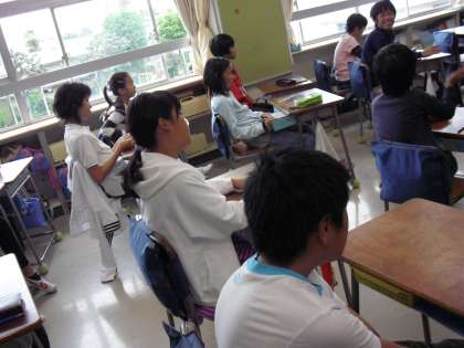 “朝の会”で子どもが自主的に調べたことをノートを見ながら、説明していました。