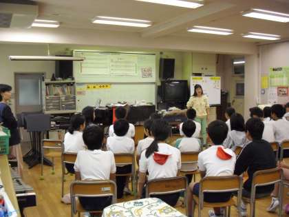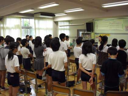 1時間目は、専科授業“音楽科”発声練習・・・おなかから声を出す練習・・「あ」行の声を出してみて・・・・はっきり発声することの大切さを指導していました。