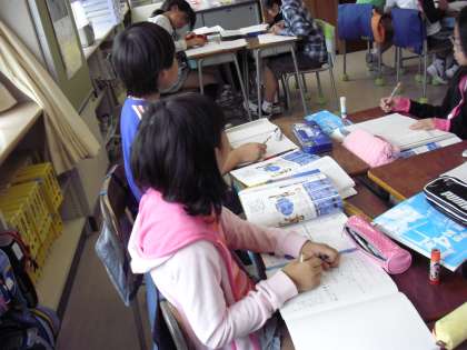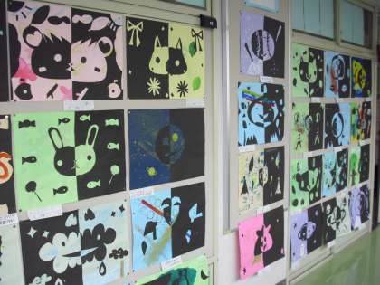 “理科”学習のまとめをわかりやすく・・・ノートにまとめていました。廊下には、図工の作品が掲示してありました。