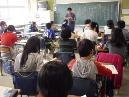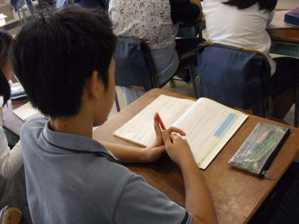 “教科:日本語”教材の意味を先生が説明して、読み方の工夫をしていくところです。