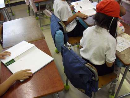 1時間目が“体育科”ですが、着替えていない子が数名いました。先生は、時間を有効に使い、待っている子たちに“朝 読書タイム”をとりました。