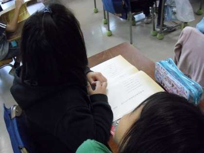 “朝の会:日直のスピーチ”・・・友達とものまねごっこをしたこと等の話をしていました。