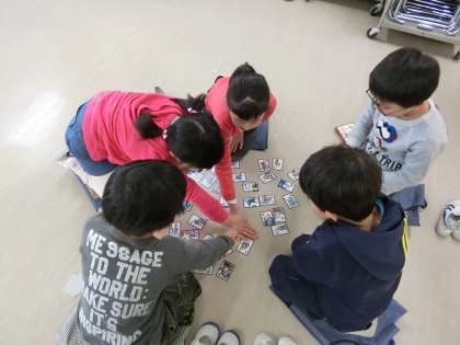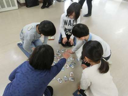 今回使用した「江戸いろは歌留多」は、少し難しい「ゐ、ゑ、を、れ(りょ)」などの旧仮名が使われたかるたが数枚あり、何度か事前に練習をしていても子どもたちにとってはまだ難しく、お手つきをしてしまう場面も見られました。