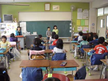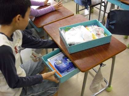 “朝の会”今日は、1・2時間目は、専科授業“図工”です。朝の会の時にすでに用意している子どももいます。
