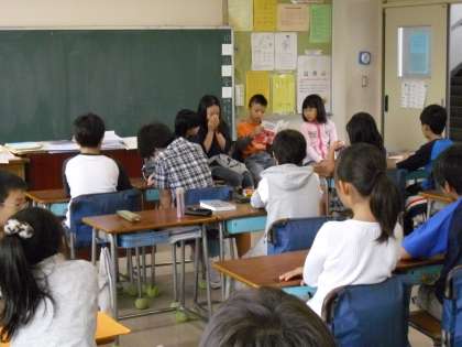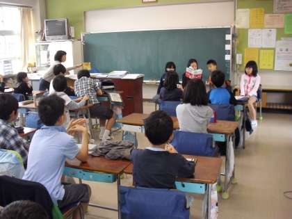 今朝は、係のよる・・・“読み聞かせ”をしていました。なかなか上手で、聞いている子ども達も真剣に聞いていました。