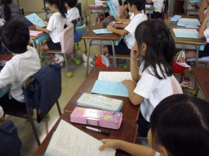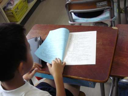 “学芸会のオリエンテーション”をしていました。劇の登場人物の説明・・具体的にどういう感じなのか・・・ストーリーは、どう進んでいくか・・・テープを流しながら、詳しく説明していました。