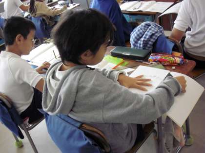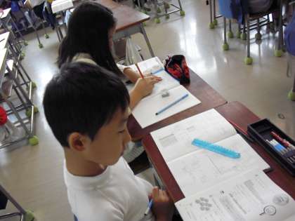 “算数科:少人数指導”できた子は、友達と考え方が同じかどうかたかめていました。