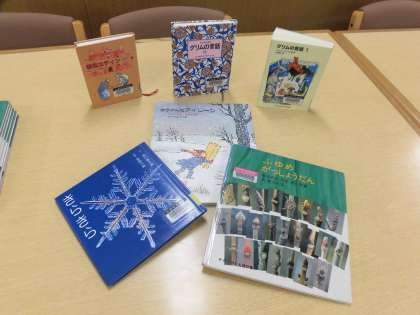 2月のLLもありました。『きらきら』『ホレおばさん』『ふゆめがっしょうだん』『ゆうかんなアイリーン』の読み聞かせや素話をしていただきました。雪に関係がある本が多くありました。お話を聞いた後は「雪の結晶、きれいだね」「冬芽って、顔みたいで面白い!」と写真を見て話したり、グリム童話を読み聞かせしあったりして楽しんでいました。LLのみなさま、今日も素敵な時間をありがとうございました。