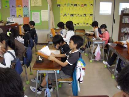 そのあと、1時間目“学芸会:孫悟空”の台本読み・・・先生から、“声の大きさ、話しかけるように言う、恥ずかしがらないで・・・”等々の注意を受けてからスタートです。