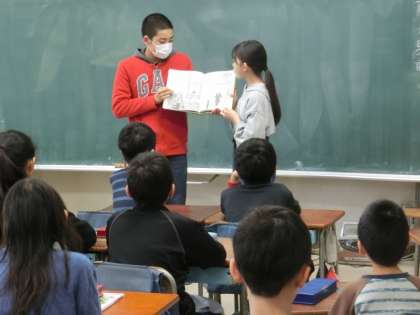 今日の読書タイムは図書委員が各クラスに行って、読み聞かせをしました。ロッカー文庫の中から、おすすめの本を選んで読みました。どのクラスも静かに聞いてくれました。