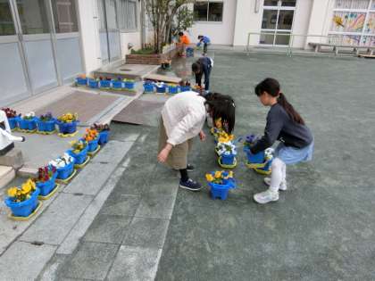「パンジーを育てて、6年生の卒業をお祝いできるといいですね。」