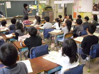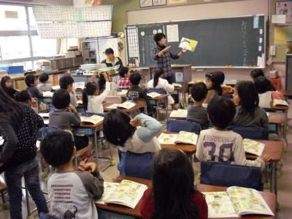 “国語の学習”教材の読み聞かせをしていました。担任と少人数の先生とTTです。