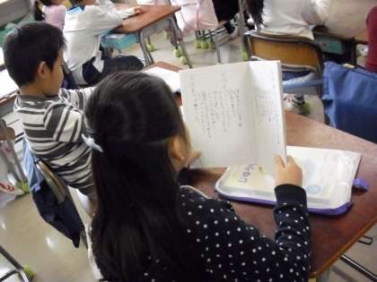 “朝の会”読書調べで・・・“読書の仕方”読み方の説明を丁寧にしていました。