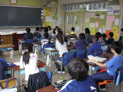 係の児童による“読み聞かせ”をしていました。係が順番に本を読んでいます。聞く側もどういう内容かを考えながら聞いています。