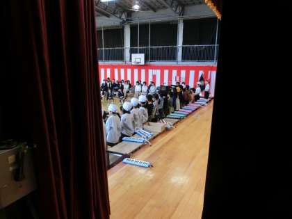 4月6日の入学式で2年生は歓迎の出し物をしました。学校のことや1年生でできることを大きな声で堂々と演じました。歌は元気いっぱい、「こいぬのマーチ」も心を合わせて演奏できました。