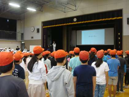 運動会に向け、音楽朝会で「ゴーゴーゴー(運動会の歌)」と「校歌」の練習をしました。元気に力強く歌う「ゴーゴーゴー」に対して、しっとりとのびやかに歌う「校歌」。それぞれの曲調を意識して歌う子どもたち。運動会当日はきっと、青空いっぱいに美しい歌声をひびかせてくれると思います。