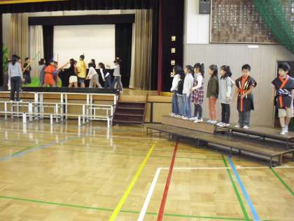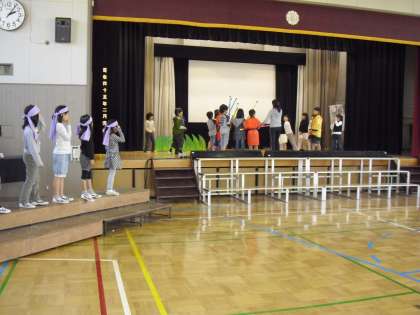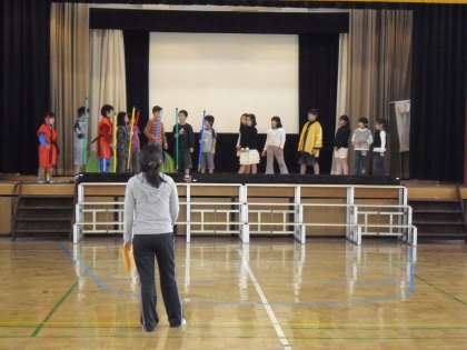 3年生が演じるのは、“孫悟空”・・・先生の指導を受けて、セリフ、動作、登場人物同士の位置などを工夫していました。