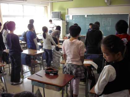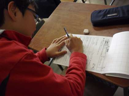 朝の会の前に漢字練習をする子・・・そして、“朝の会”で元気にあいさつ・・・一日のスタートです。
