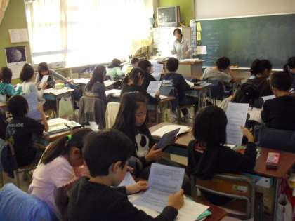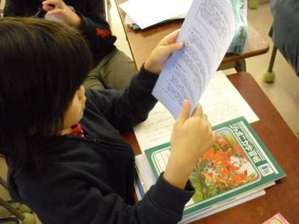 “朝の会”で・・・学芸会のプログラムを配布・・・自分の出番などを見ていました。