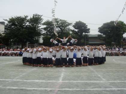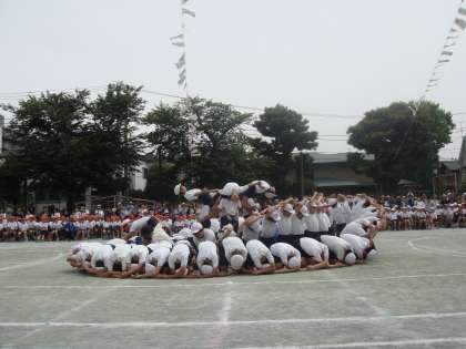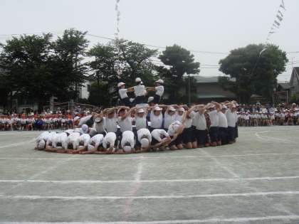 運動会最大の見せ場5・6年生による組体操が始まりました。