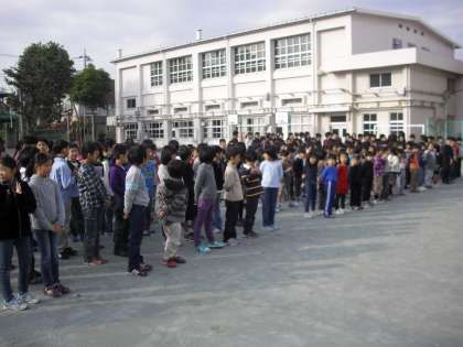 一週間の始めは、“児童朝会”から始まります。8時30分から、始まりますが、5分前には、ほとんどの児童が整列して待っています。今朝は、校長先生から、“東京都美術展に出品”した2年生と4年生の児童に賞状を渡しました。また、過日行われた世田谷区立小学校連合運動会“64小学校が3ブロックに分かれて参加”で活躍した6年生に拍手でたたえました。