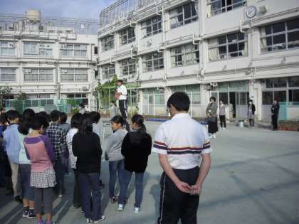 11月15日(月)さわやかな九品仏小の朝     児童朝会