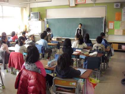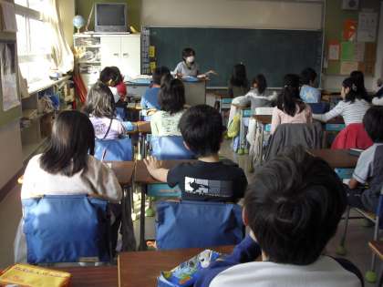 “朝の会:日直のスピーチ”・・・もっと上手に話す工夫について先生がアドバイスしていました。