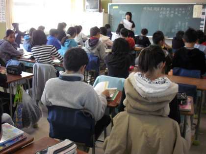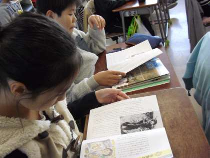 “朝の会”をするところです。会の前に、道徳の本を読む子もいます。