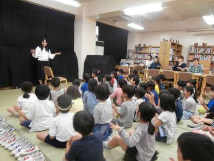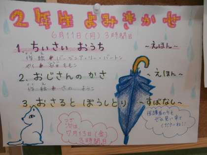 今日は6月のLアンL読み聞かせでした。「おさるとぼうしとり」の素話と「ちいさいおうち」「おじさんのかさ」の読み聞かせでした。