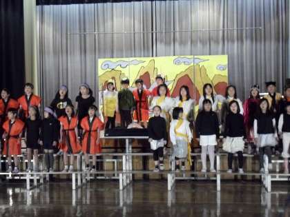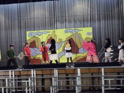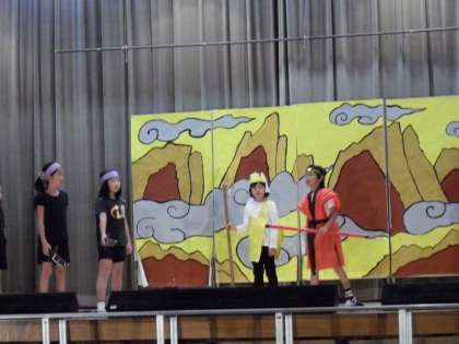 最後の舞台練習を行いました。3年生は、“孫悟空”を演じます。全員で成功させようと一人一人が真剣に最後の練習していました。
