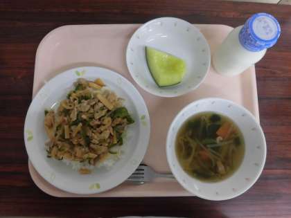 【献立】 チンジャオロース丼   牛乳