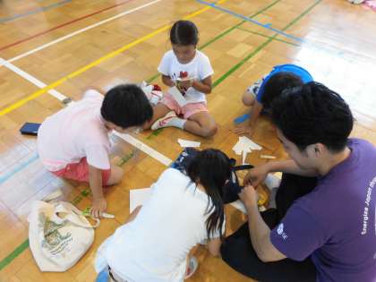 社員の方に優しく教えていただきながら、自分たちで風車をつくり、風の動力できれいな電気をつけていました。