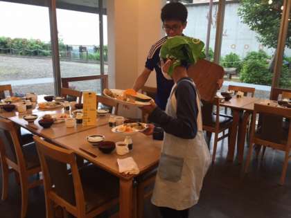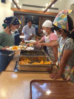 「なかのビレジ」の食事は自分たちで準備をします。お代わりもあり、みんなお腹いっぱい食べていました。