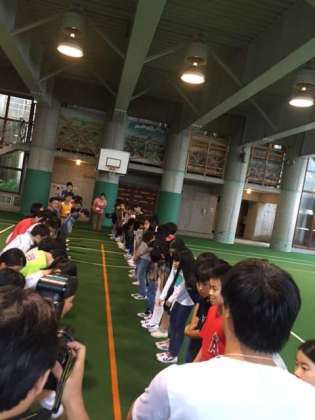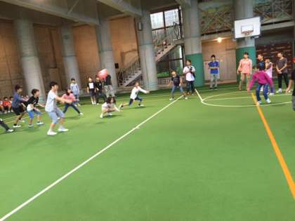 外は土砂降りの雨が降っていますが、矢屋根付き広場の中には、ドッジボールの対抗試合を行う子どもたちの歓声が響き渡っています。