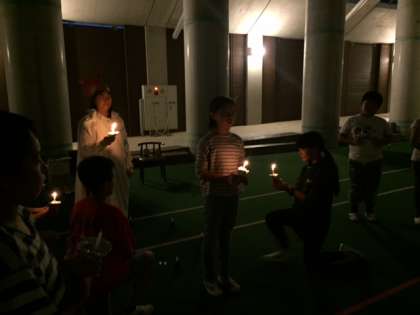 幻想的な演出を工夫した室内では5年生全員のキャンドルの灯りの輪が美しかったです。