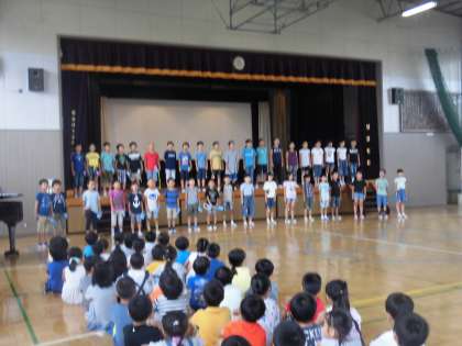 全校合唱は「ゆかいに歩けば」途中から6年生が低音パートを歌い、きれいなハーモニーになりました。突然のことでしたが、下級生の多くが6年生の変化に気付き、改めて6年生の素晴らしさを知りました。