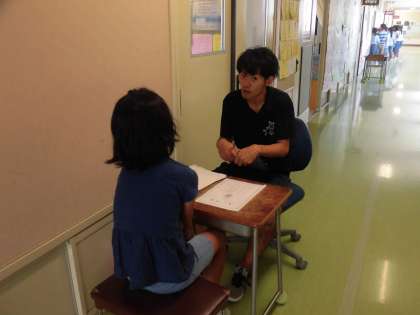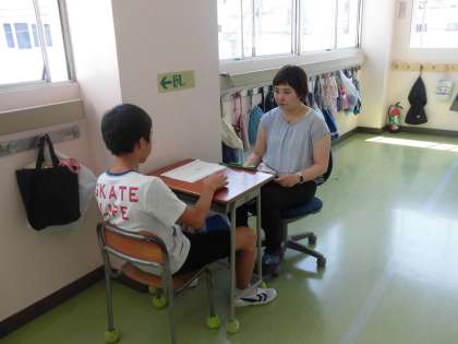 担任と1学期を振り返りながら通知表を渡しました。