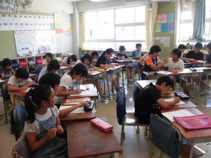 その間、待っている児童は先生の通知表を書いていました。