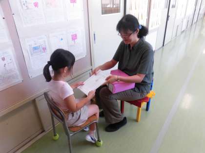待っている間は、1学期のめあてをふりかえり、