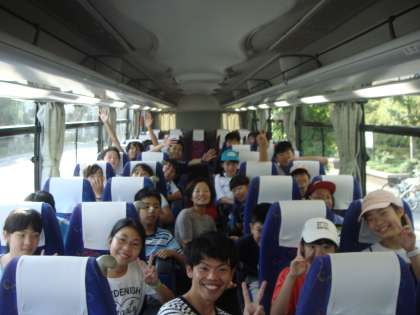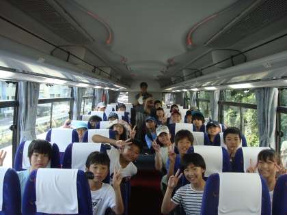 バスの中で、子どもたちは和気あいあい、楽しい雰囲気でいっぱいでした。